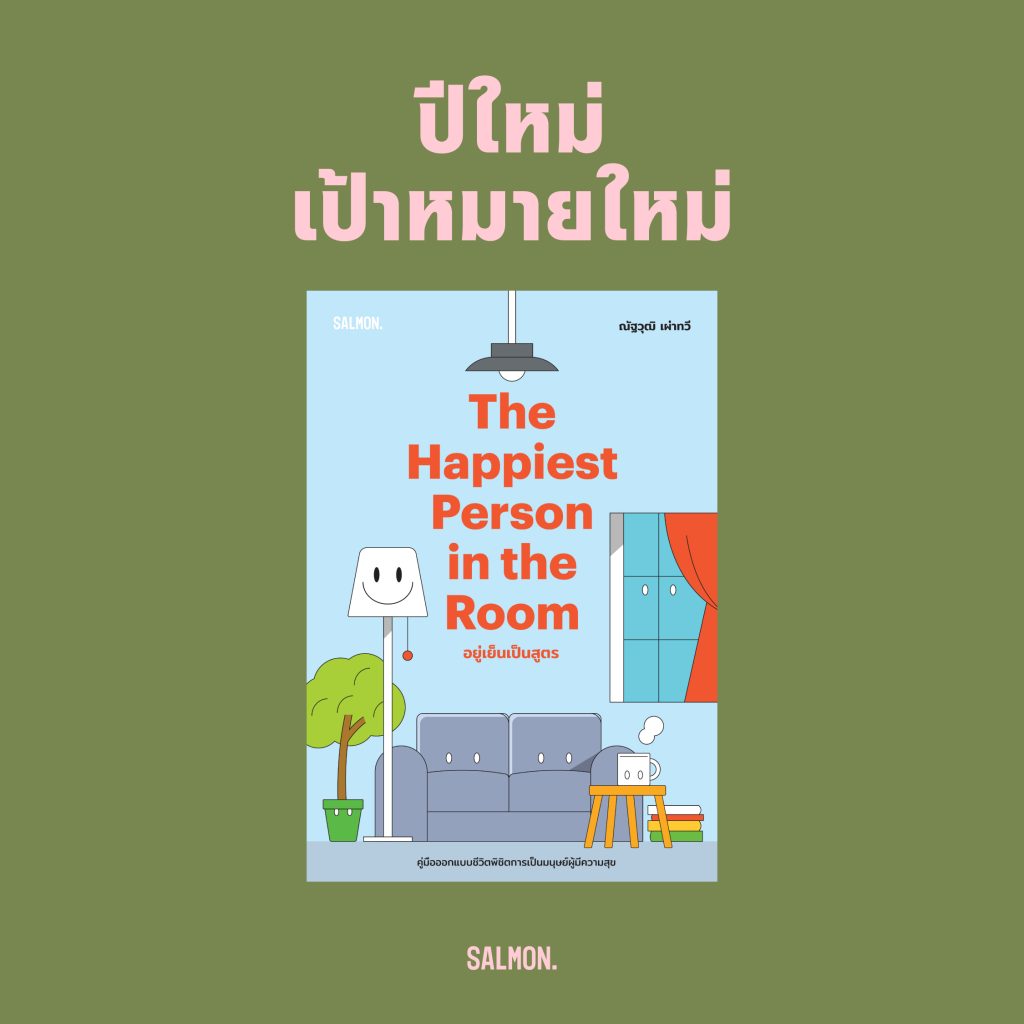 แต่จะทำยังไงให้สำเร็จนั้นชวนไปอ่านกันต่อใน ‘THE HAPPIEST PERSON IN THE ROOM อยู่เย็นเป็นสูตร’ หนังสือที่จะบอกเราว่าปัจจัยหรือพฤติกรรมใดที่ส่งผลหรือช่วยเพิ่มความสุขในมิติต่างๆ ใช้เงินซื้อความสุขยังไงให้คุ้มค่า ทำยังไงความรักจะยืนยาว โดยคำถามต่างๆ จะถูกนำมาตอบได้ด้วยหลักพฤติกรรมศาสตร์ จิตวิทยาสังคม และเศรษฐศาสตร์ความสุข
