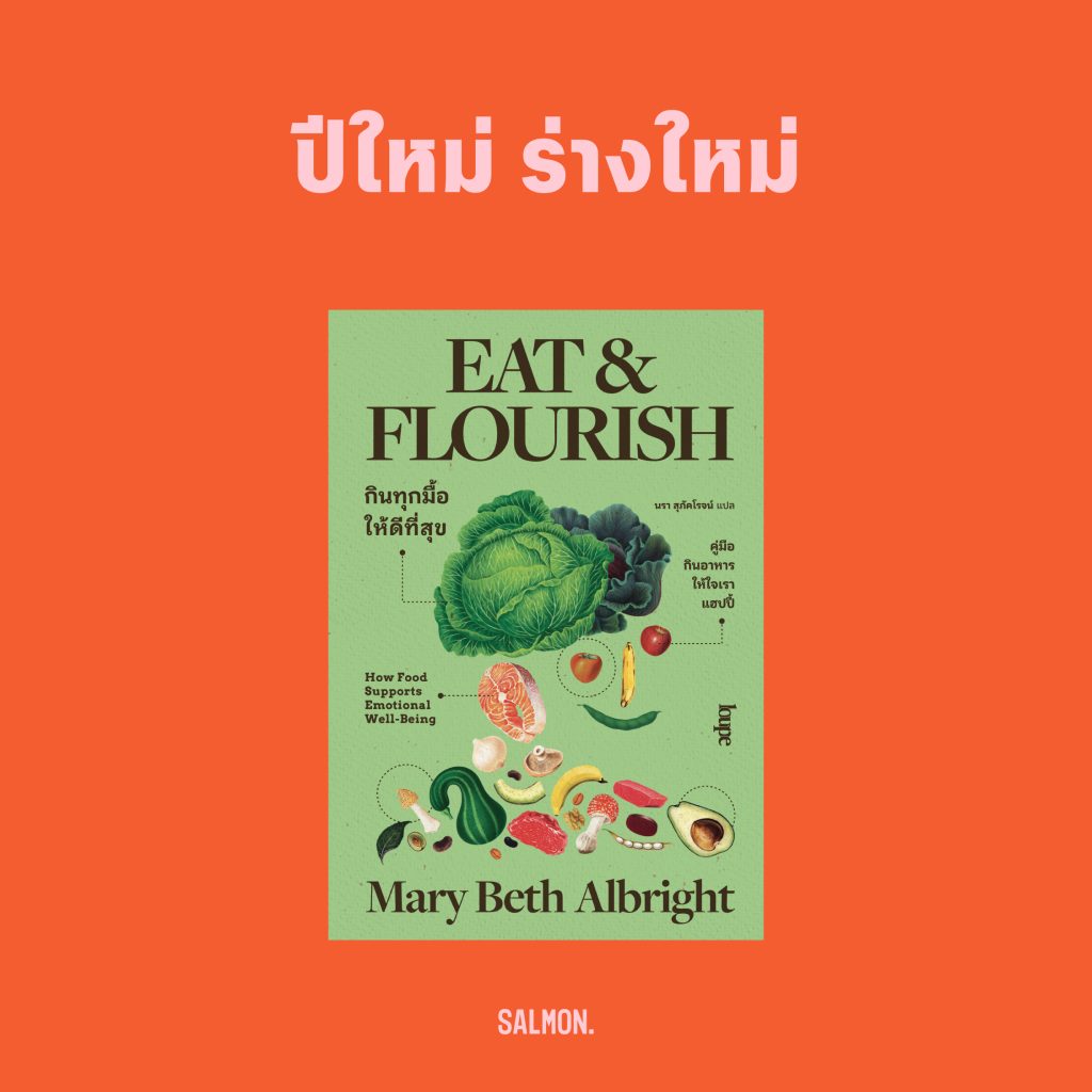 แต่ขอบอกว่าไม่เป็นไร เพราะเรามีตัวช่วย! ใครกำลังอยากเปลี่ยนวิธีการกิน ขอแนะนำ ‘EAT AND FLOURISH: HOW FOOD SUPPORTS EMOTIONAL WELL-BEING กินทุกมื้อให้ดีที่สุข’ หนังสือที่จะพาคุณไปสำรวจความสัมพันธ์ระหว่างอาหารกับอารมณ์ พร้อมแจกเมนูแสนอร่อยและมีประโยชน์ตลอดเล่ม ด้วยการรวบรวมงานวิจัยด้านโภชนาการผสมกับการเล่าเรื่องอย่างเอร็ดอร่อย ปรุงออกมาเป็นเรื่องเล่าที่ย่อยง่าย อ่านเพลินนนน