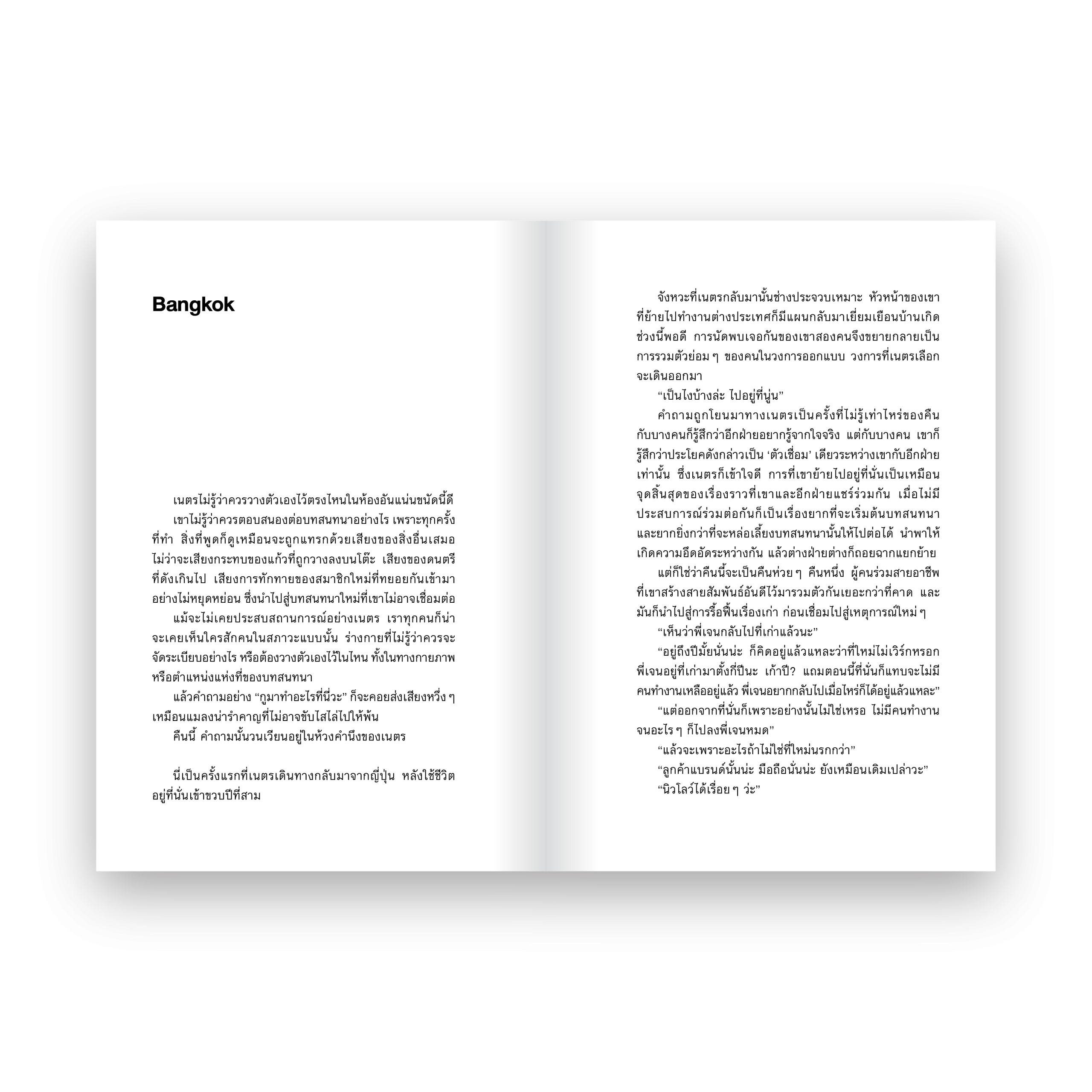 คืนสุดท้ายของการกลับมาเยี่มประเทศไทยหลังย้ายไปอยู่ญี่ปุ่น เนตร ได้พบกับ เรย์ ชายหนุ่มรุ่นพี่ที่เคยเป็นเพียงคนนอกวงโคจรของชีวิตอีกครั้ง แล้วการทักทายสั้น ๆ ก็กลายเป็นการสานความสัมพันธ์ หากเรื่องราวของพวกเขากลับถูกคั่นกลางด้วยระยะทางและอะไรที่มากกว่านั้น ผลงานในซีรีส์ RE-LEARN-TIONSHIP นวนิยายที่จะพาเราไปสำรวจความสัมพันธ์ที่หลากหลาย โดย นริศพงศ์ รักวัฒนานนท์ ผู้เขียน FAMILY COMES FIRST ด้วยรักและผุพัง