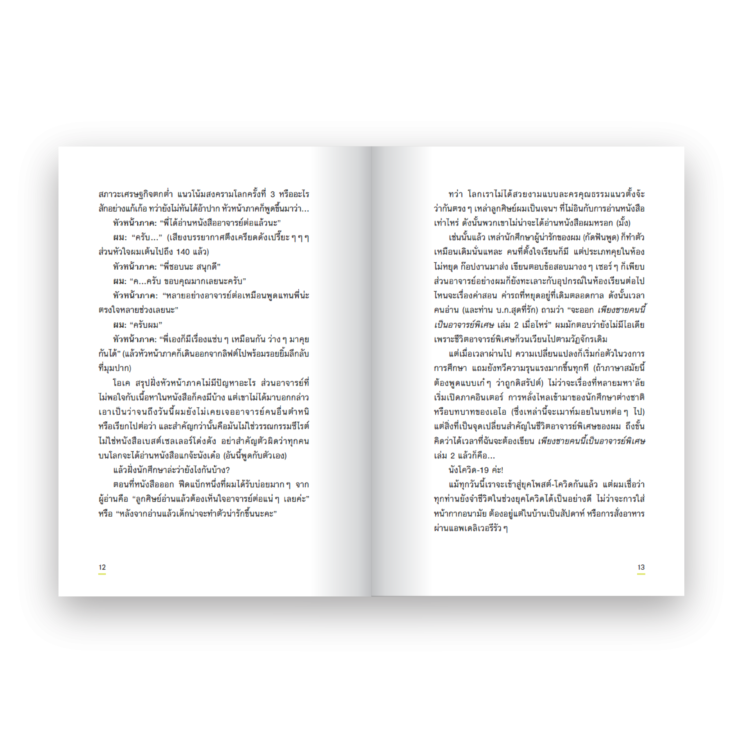 เรื่องเล่าที่คัดสรรจากประสบการณ์ตลอด 16 ปีแห่งความหวังของ ‘คันฉัตร รังษีกาญจน์ส่อง’ อาจารย์พิเศษผู้ทั้งรัก ทั้งชัง ทั้งหวานและขมขื่นกับการตบตี เอ้ย ประสิทธิ์ประสาทวิชาให้กับลูกศิษย์มาแล้วหลายต่อหลายรุ่น ตั้งแต่เจนฯ วายยันเจนฯ ซี ตั้งแต่การนั่งเรียนในห้องจนเจอกันในซูม ตั้งแต่เงินออกไม่ตรงเวลา จนตอนนี้ก็ยัง…เอ่อ…ไม่ตรงเวลา