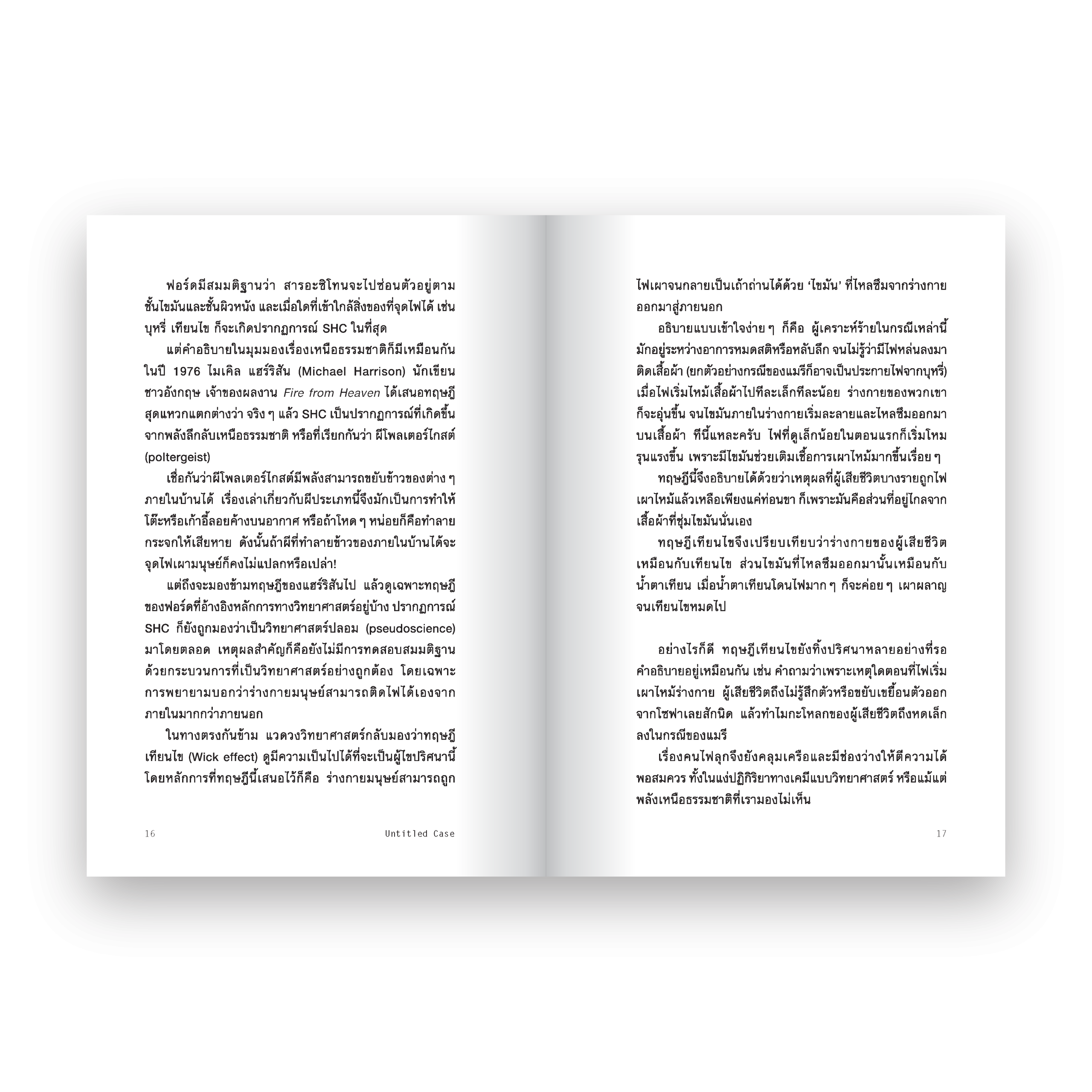 เสียงแห่งความหวาดกลัวจากนักเรียนพยาบาลผู้เป็นประจักษ์พยานการฆาตกรรมยกบ้านอย่างโหดเหี้ยม, ปริศนาการหายตัวไปของชายห้าคนในป่าใหญ่ที่สงสัยว่าอาจเป็นฝีมือบิ๊กฟุต, เรื่องประหลาดของกลุ่มคนที่ต่อสู้กับสนามแม่เหล็กเพื่อหวังเอาชีวิตรอดจากวันสิ้นโลก, ความกลัวที่ผู้คนมีต่อแม่มด หมาป่า และปีศาจนำไปสู่เหตุการณ์สุดโหดเกินจินตนาการ รวมถึงอีกหลายเรื่องราวความกลัวที่ผูกติดกับความเป็นมนุษย์ในผลงานเล่มที่สี่ของ ‘ยชญ์ บรรพพงศ์’ และ ‘ธัญวัฒน์ อิพภูดม’ โฮสต์รายการพอดแคสต์ ‘Untitled Case’ ที่เชื่อว่าความกลัวเป็นได้ทั้งชนวนและผลลัพธ์ของเรื่องราวน่าสะพรึง